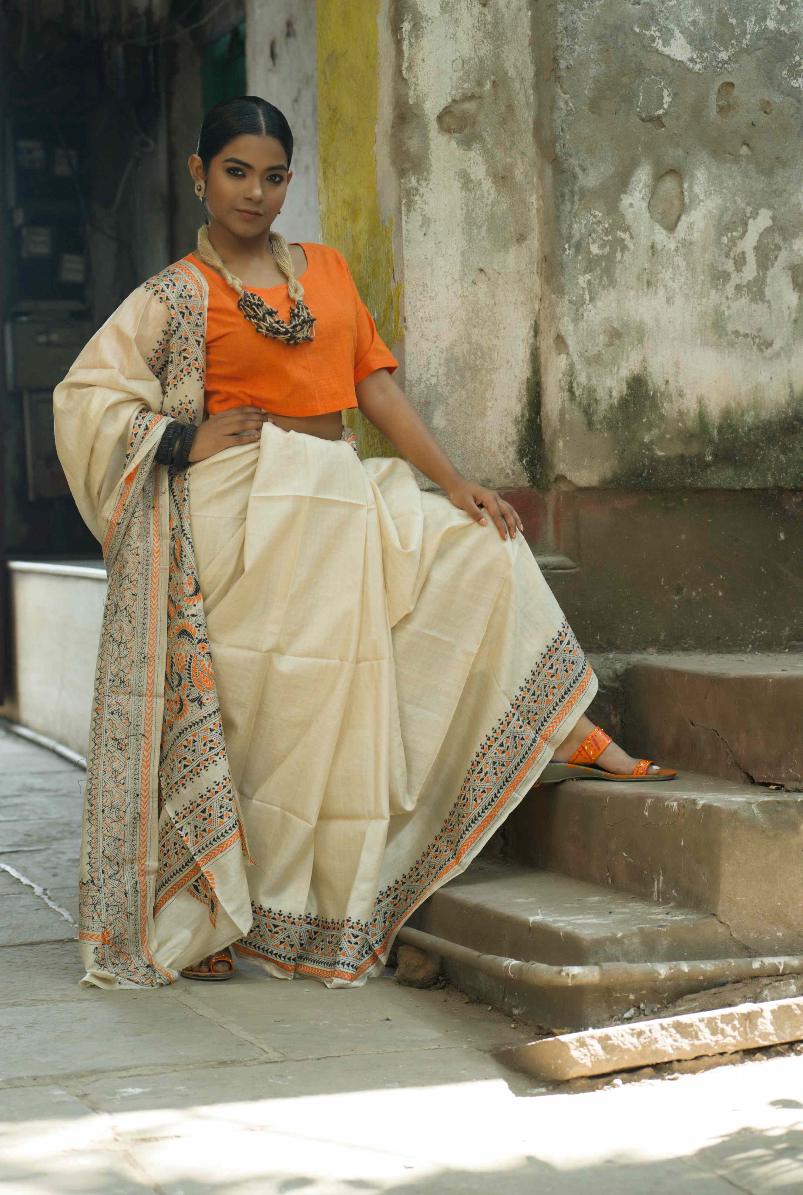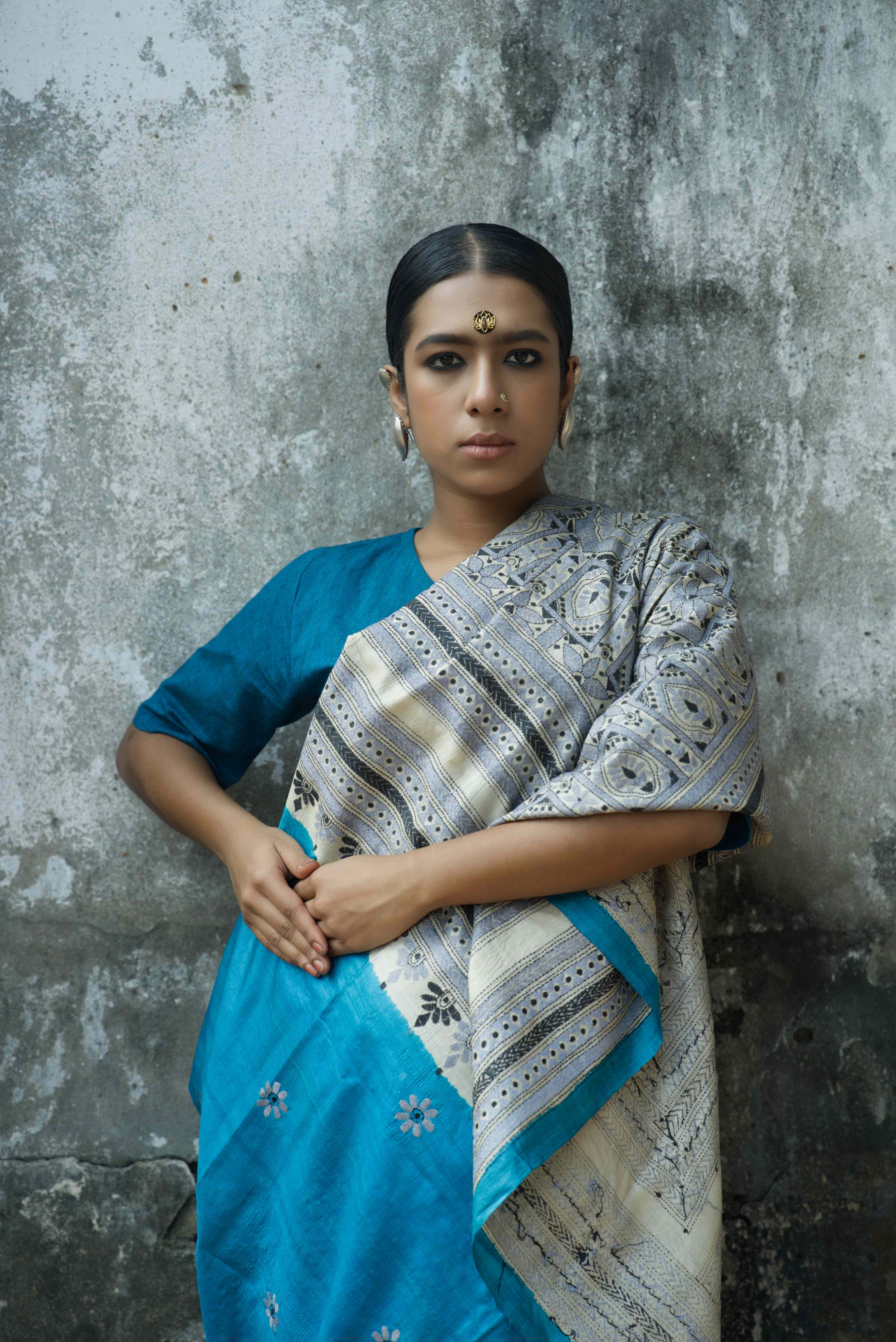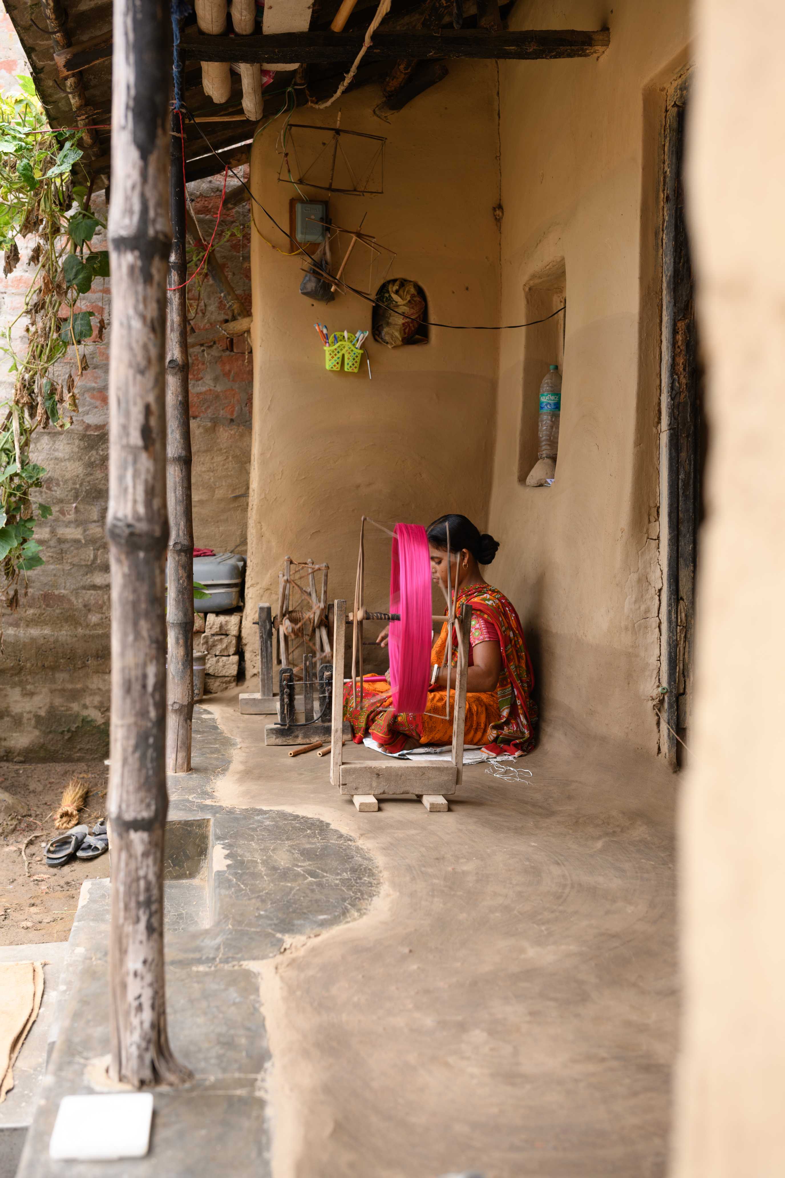 The dyed threads are then spun on a traditional Indian Charkha (spinning wheel). This age-old practice ensures that the threads retain their strength and durability while maintaining their artisanal charm.