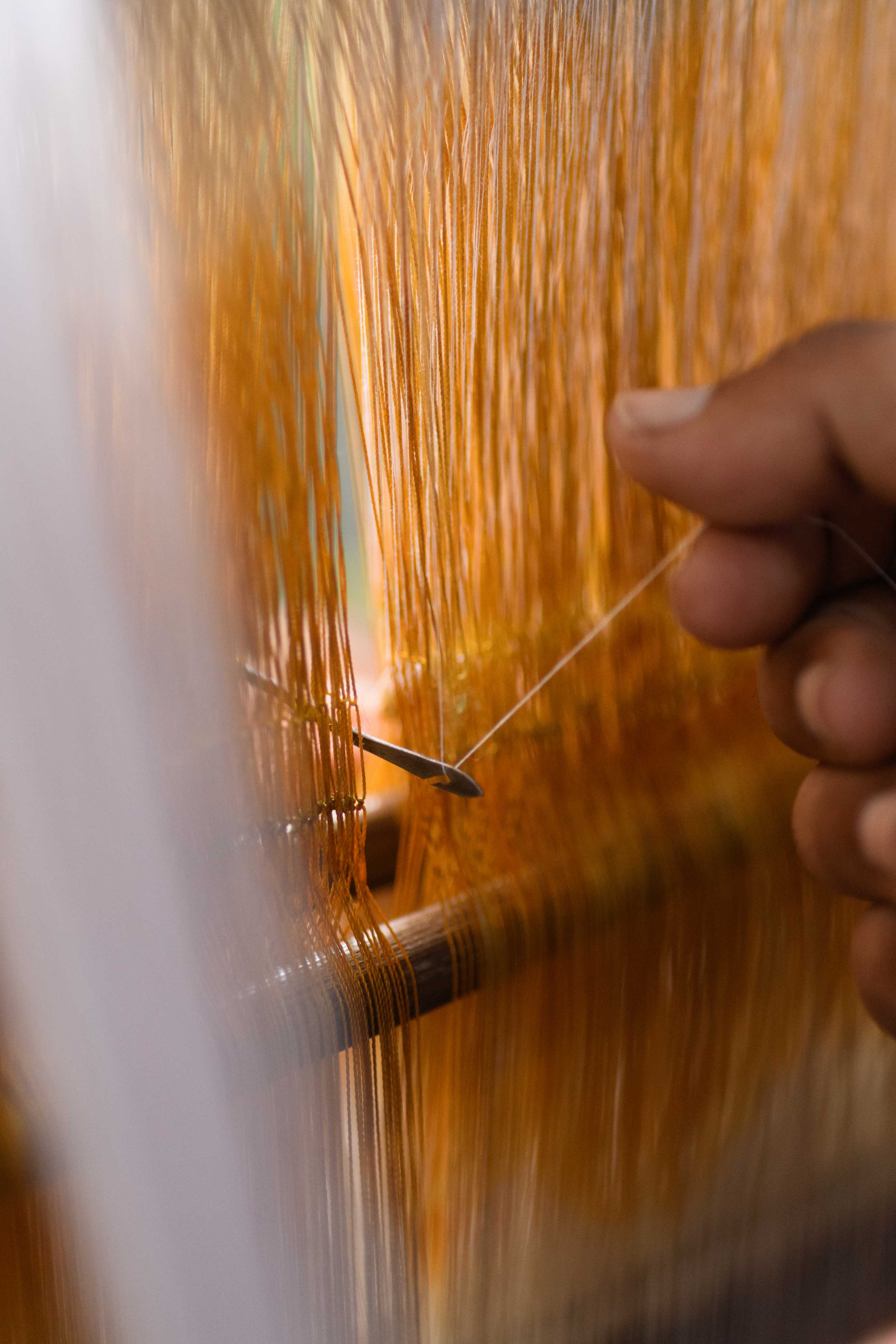 Master weavers use handlooms to carefully craft the dyed and spun threads into beautiful, intricate fabrics. This method preserves the authenticity of the handcrafted process, ensuring each fabric is a unique masterpiece.