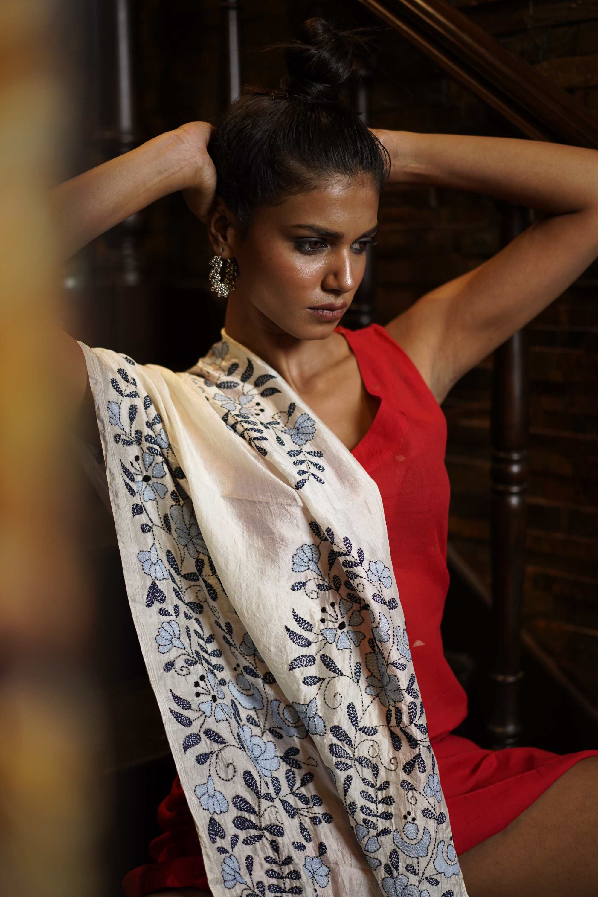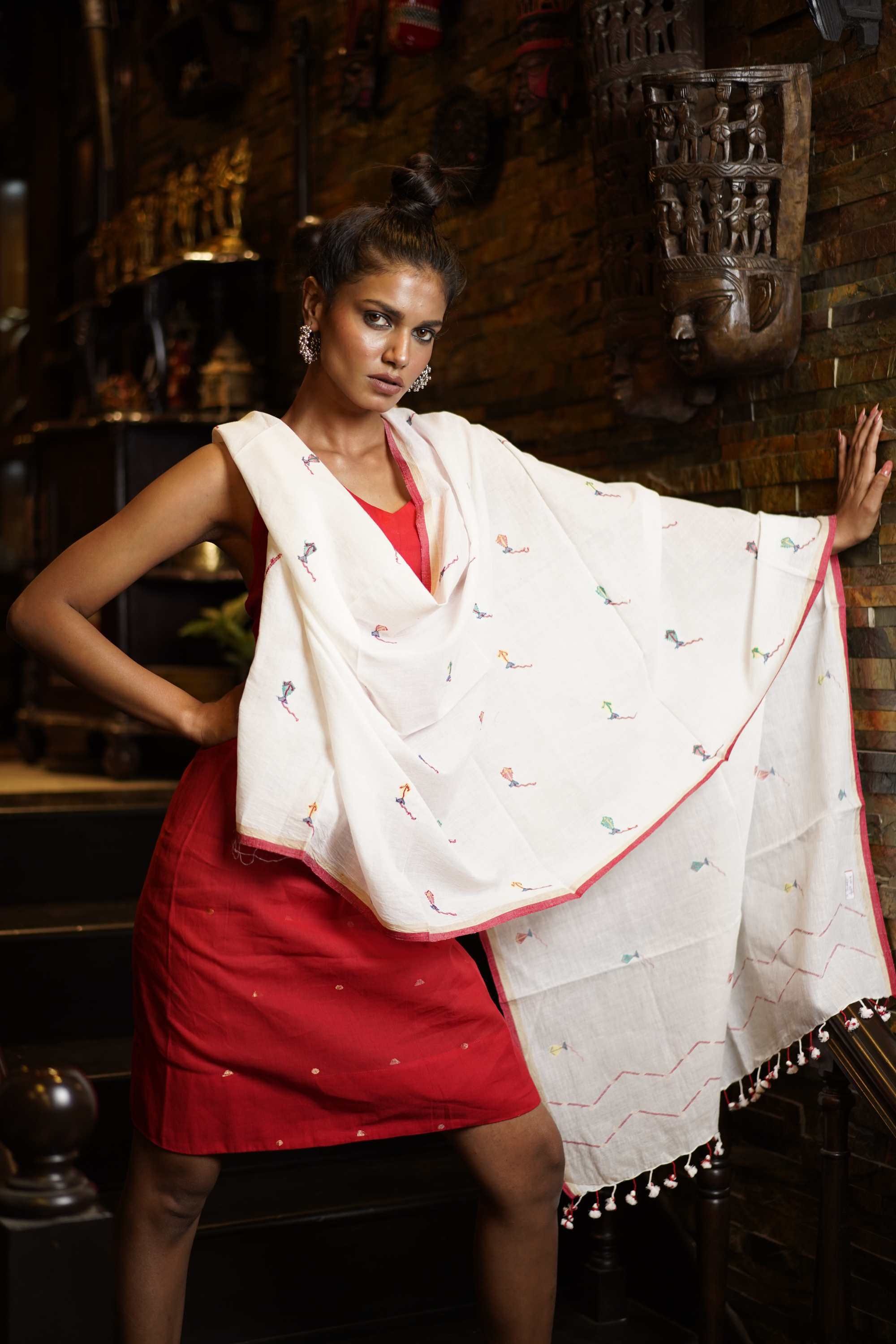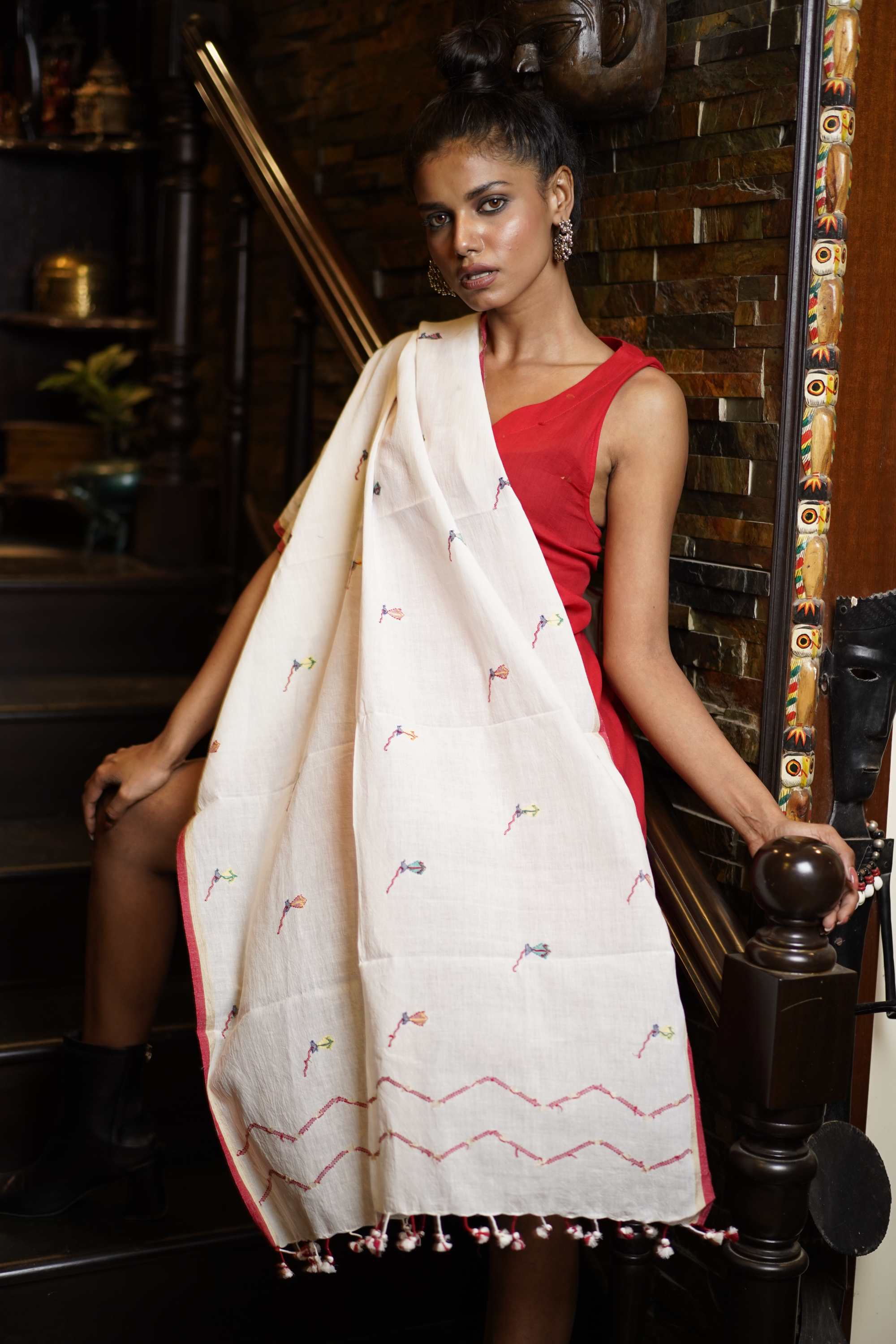 Using eco-friendly and organic materials, the threads are dyed with natural, vibrant colors. These dyes, sourced from plants and minerals, ensure sustainability while giving the fabric a rich and authentic finish.