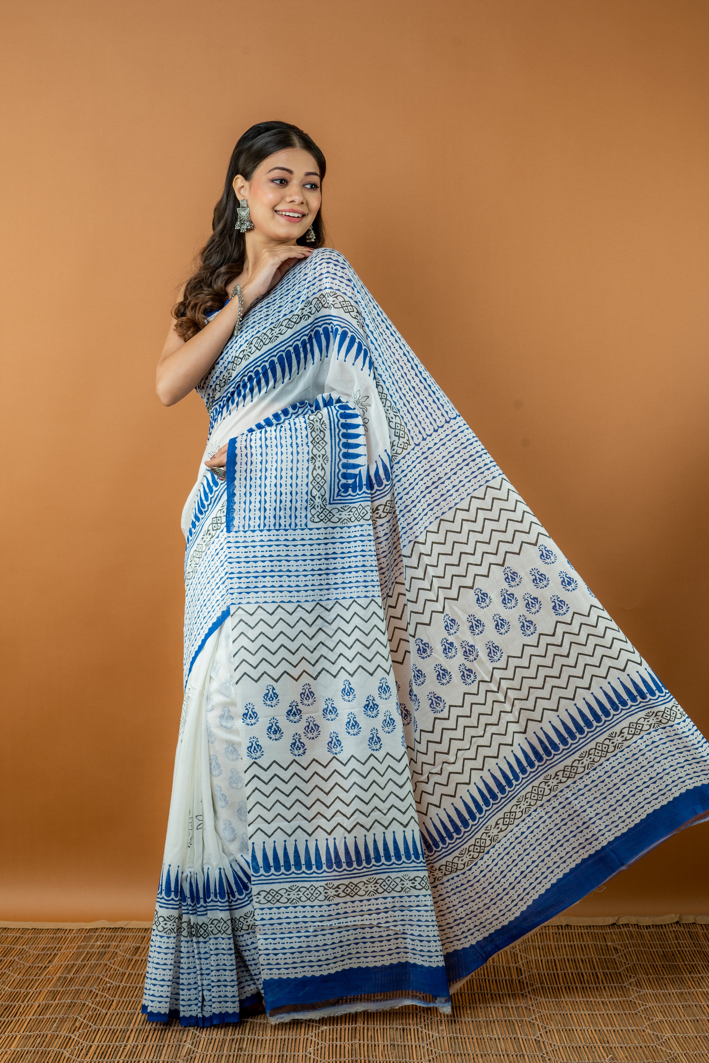 Handwoven White Printed Silk cotton saree