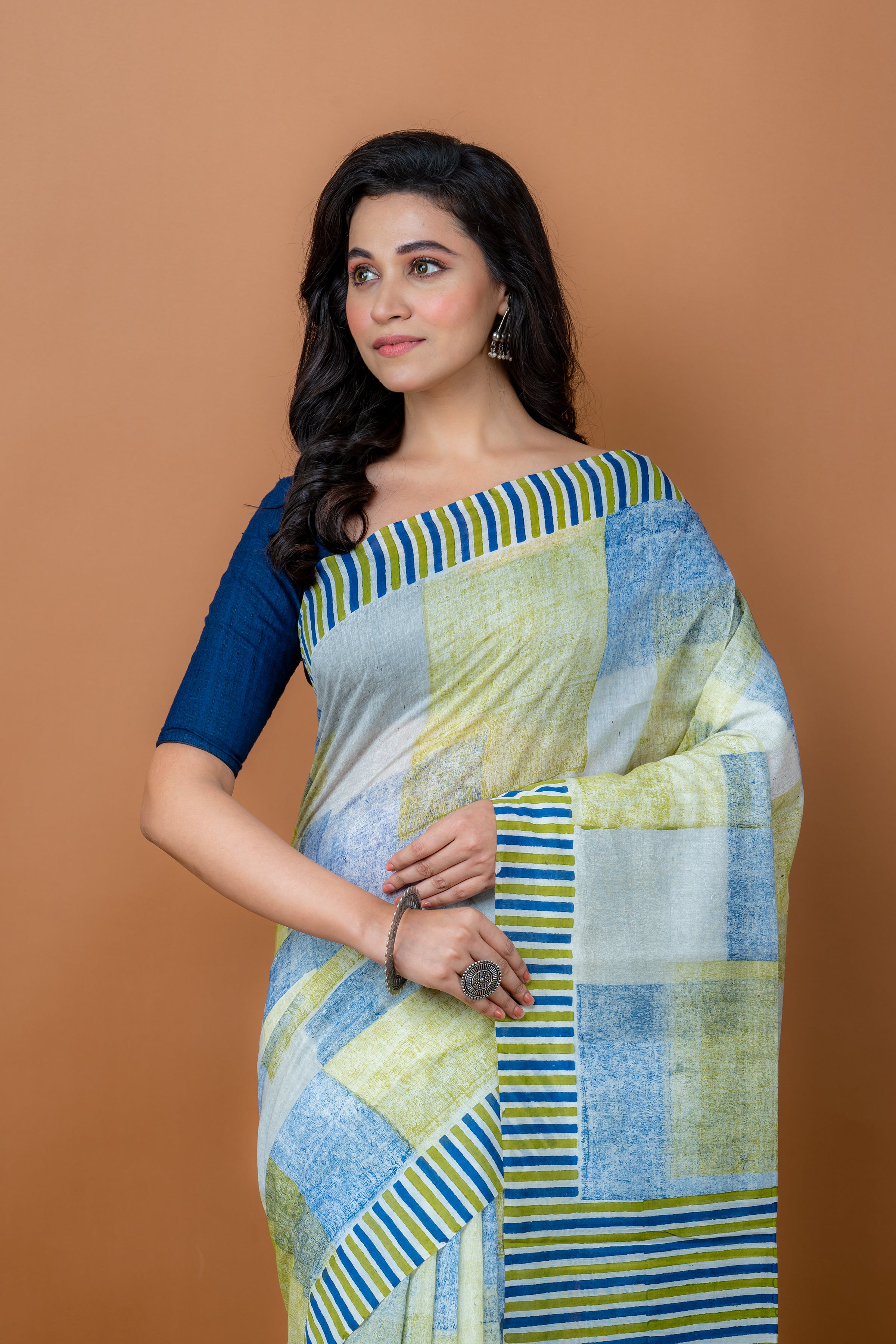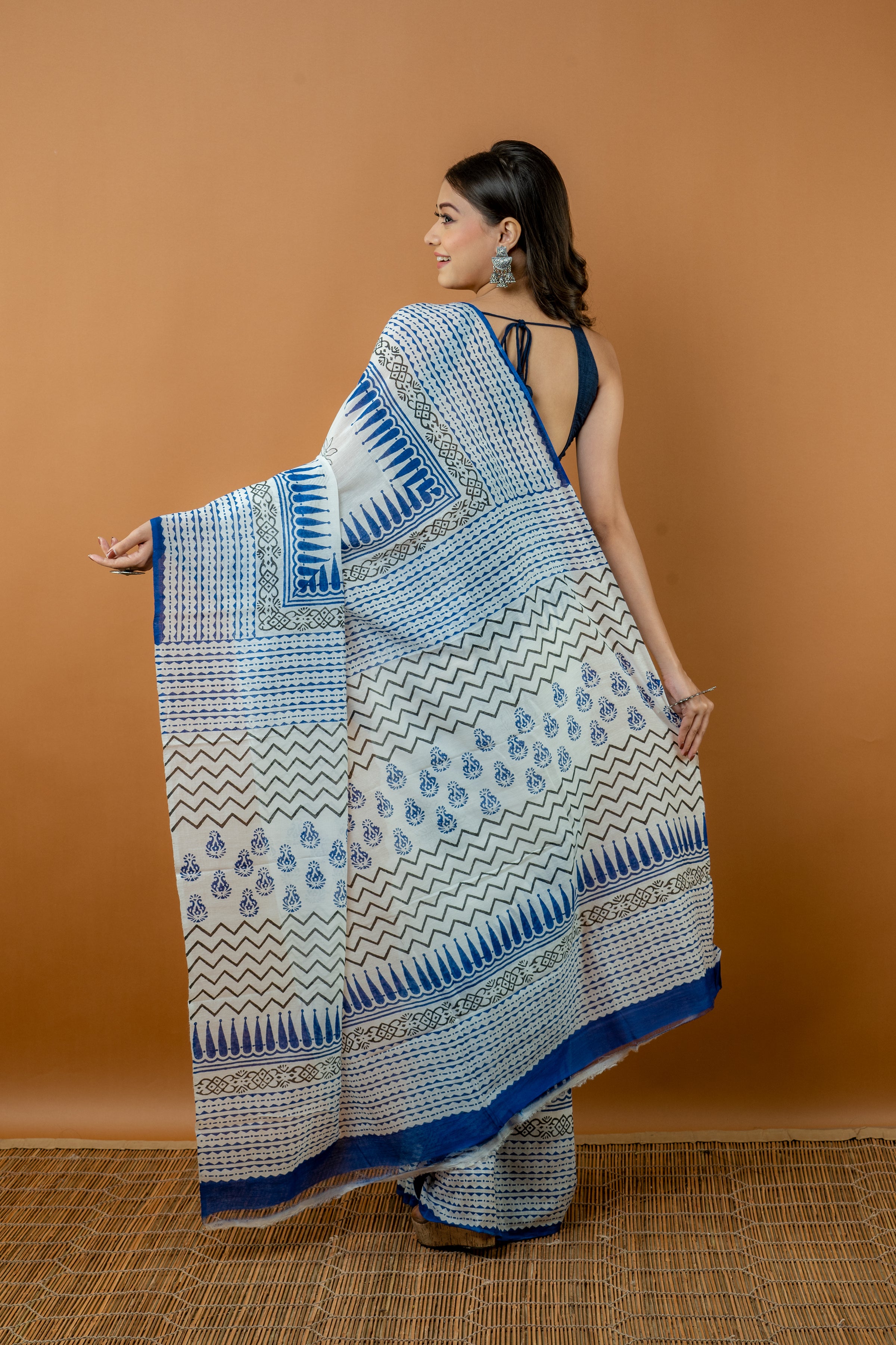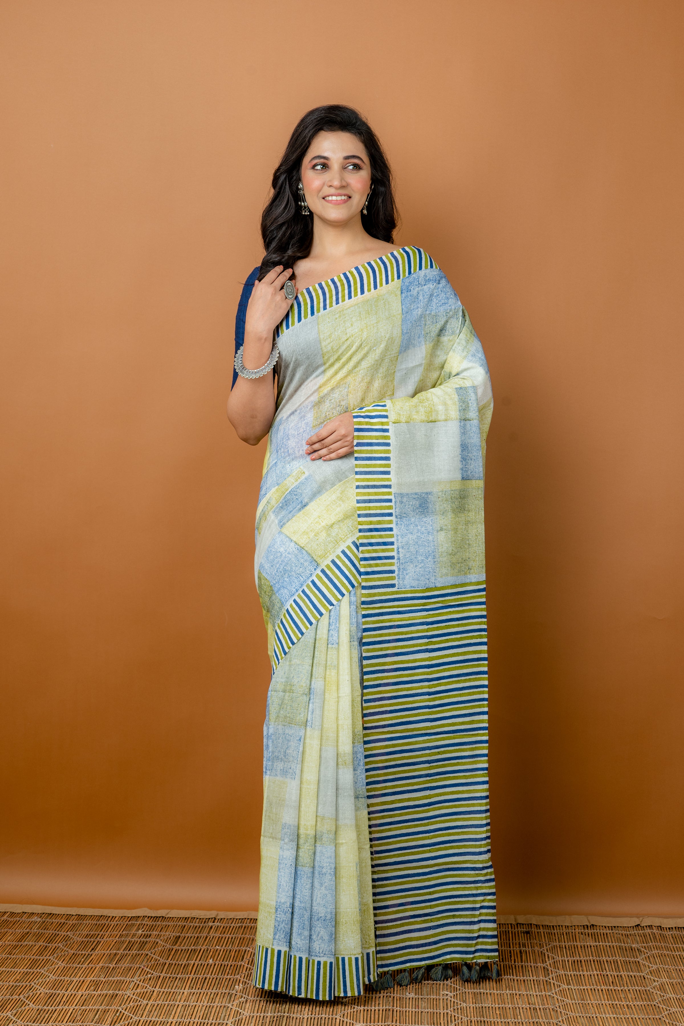 Handwoven blue cotton saree